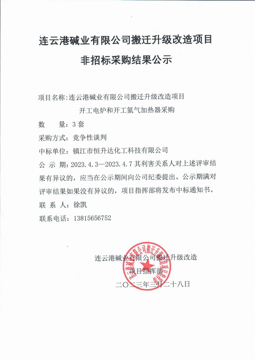 開工電爐和開工氮氣加熱器非招標采購結果公示