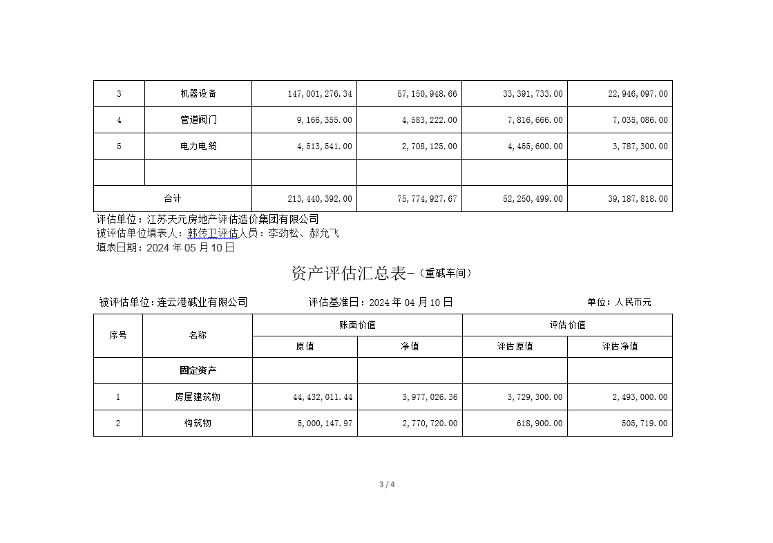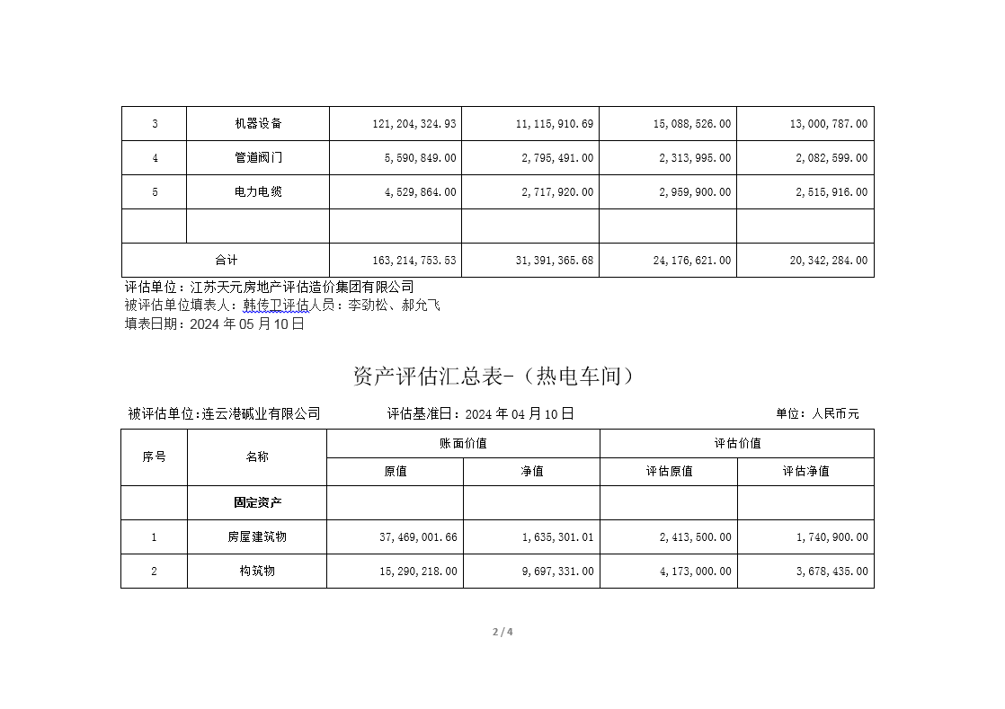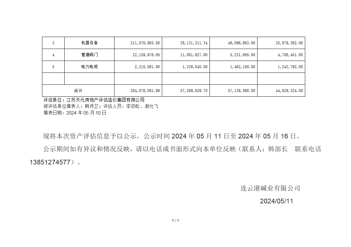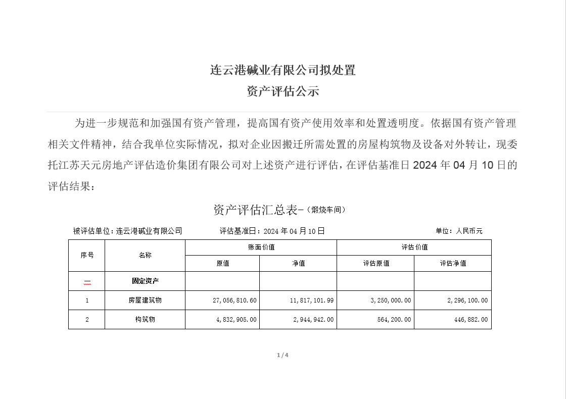 連云港堿業有限公司煅燒、熱電、重堿車間資產評估公示
