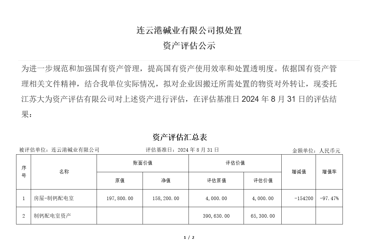 連云港堿業(yè)有限公司老廠區(qū)食堂等廢舊物資資產(chǎn)評估公示