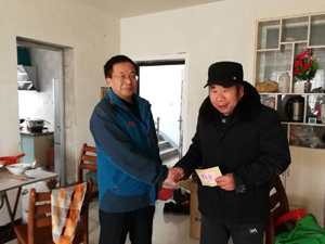 2月6日,公司董事長張衛民親自來到結對農戶卞建軍家,送去慰問金、大米和食用油,仔細詢問一家人的生活現狀,特別叮囑14歲的卞紹剛,多承擔些家務,照顧好殘疾的父母、家人,好好學習,將來擔負起養家的責任。