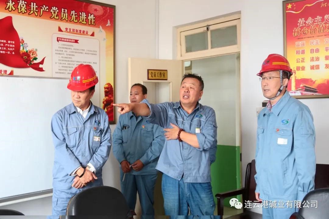在煅燒車間黨支部,張衛民對支部黨員活動陣地建設及臺賬管理等方面存在的不足提出了整改建議。在重堿車間黨支部,張衛民檢查了支部書記工作室、勞模工作室及黨員活動室,詢問了黨員活動開展的情況,同時對存在的問題提出具體要求。
