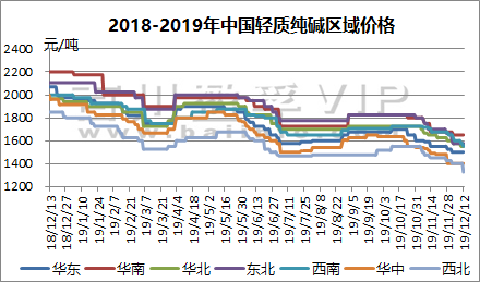百川資訊及純堿公平貿易工作站:(2019.12.6-12.12)輕質純堿出廠價格走勢圖